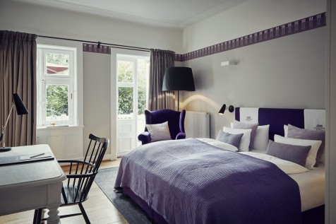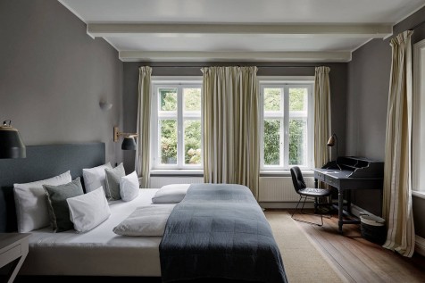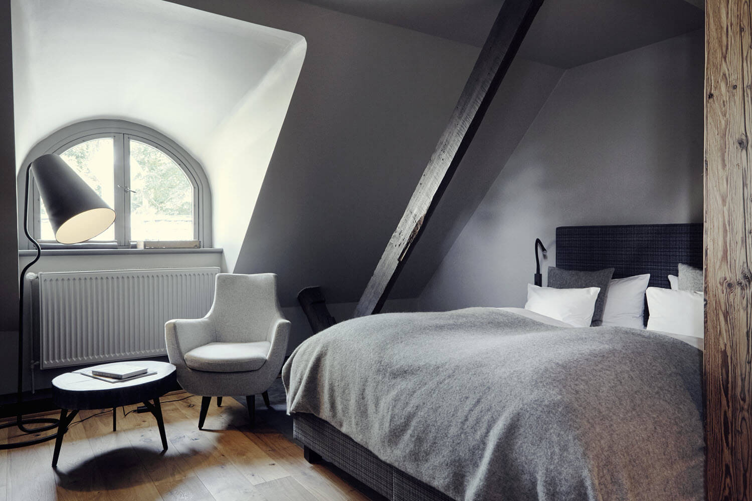 If you like it cozy & cool - a concrete look, with matt metal and dark beams across the ceiling, then you might want to pick one of our rooms in a puristic Skandi-Style.