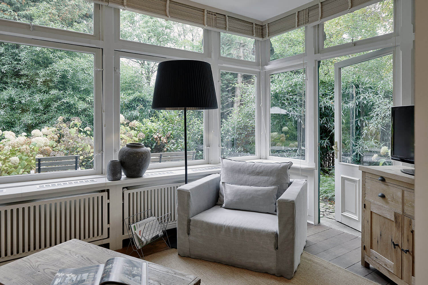Last but not least: our suite with a beach house flair, a terrace and a conservatory. Snuggly fabrics in natural colours, loungy rattan furniture, hyggelig accessories – here, right in the middle of Hamburg, you will feel a little bit like in the Hamptons.